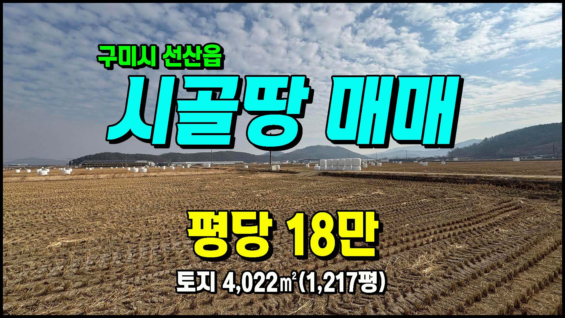 ▶ 토지/임야 [구미토지] ◈ 북산리 농림지역(농업진흥구역) 귀농귀촌 땅매매 ◈ 토지 1,217평 당18만 ◈