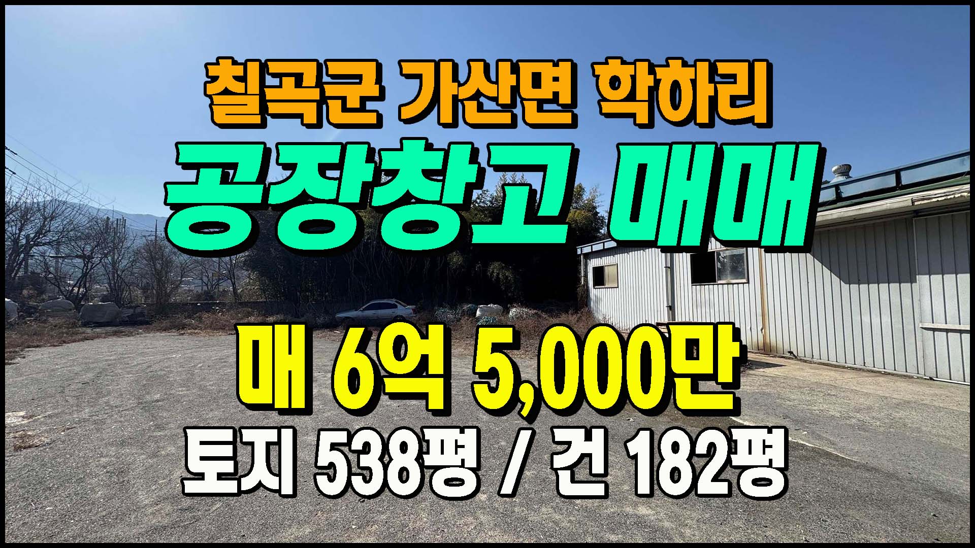 ▶ ◈ 공장창고-매매 [칠곡공장] ◈ 학하리 2차선도로접 계획관리 창고매매 ◈ 토지 556평 건181평 ◈