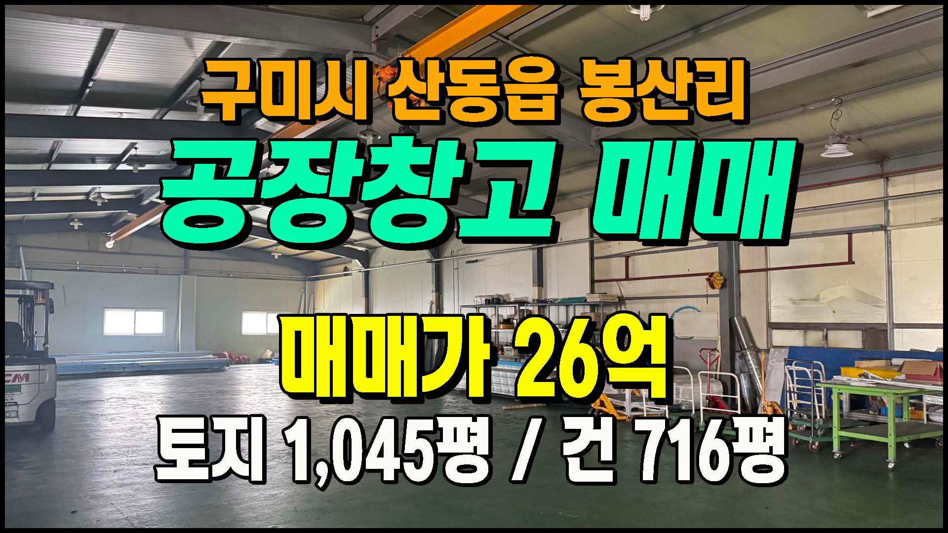▶ ◈ 공장창고-매매 [구미공장] ◈ 산동읍 봉산리 2차선접 일반공업지역 다용도공장 ◈ 토지 1,045평 건716평 ◈