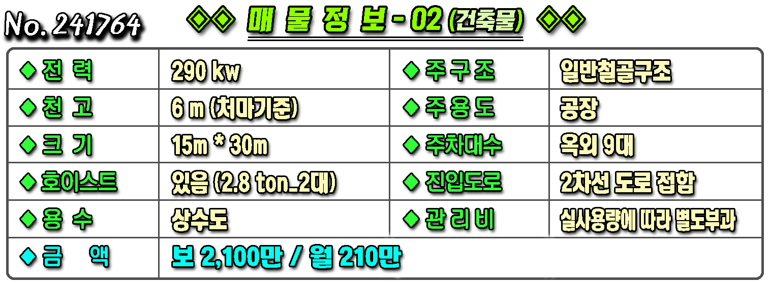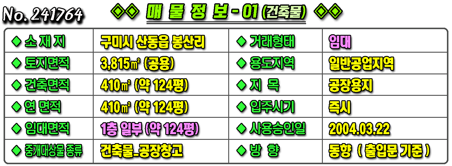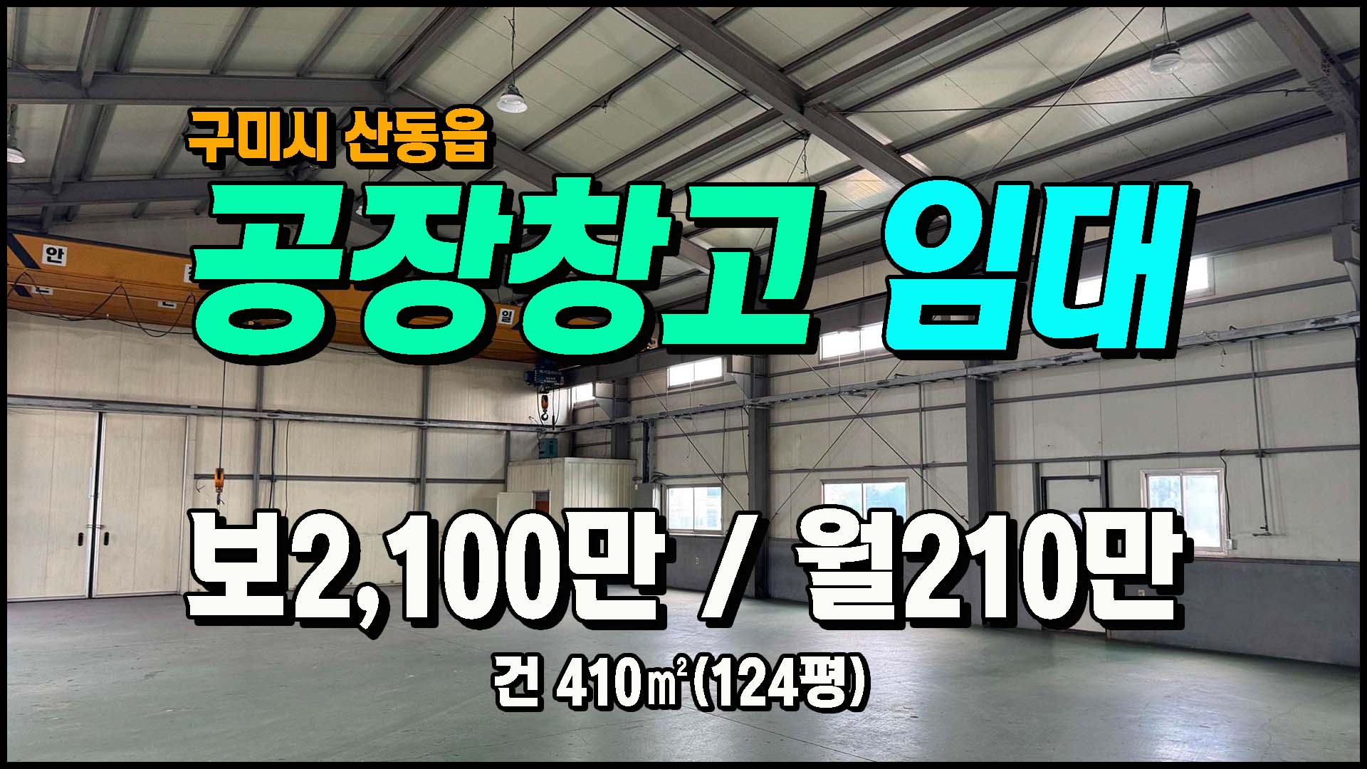 ▶ ◈ 공장창고-임대 [구미공장] ◈ 봉산리 4공단 인근 크레인(2.8톤2대)+사무실 보2,100만 ◈ 월210만 ◈