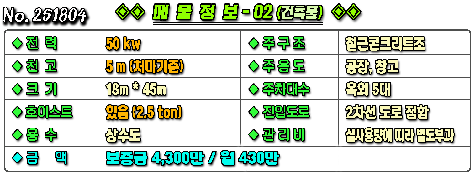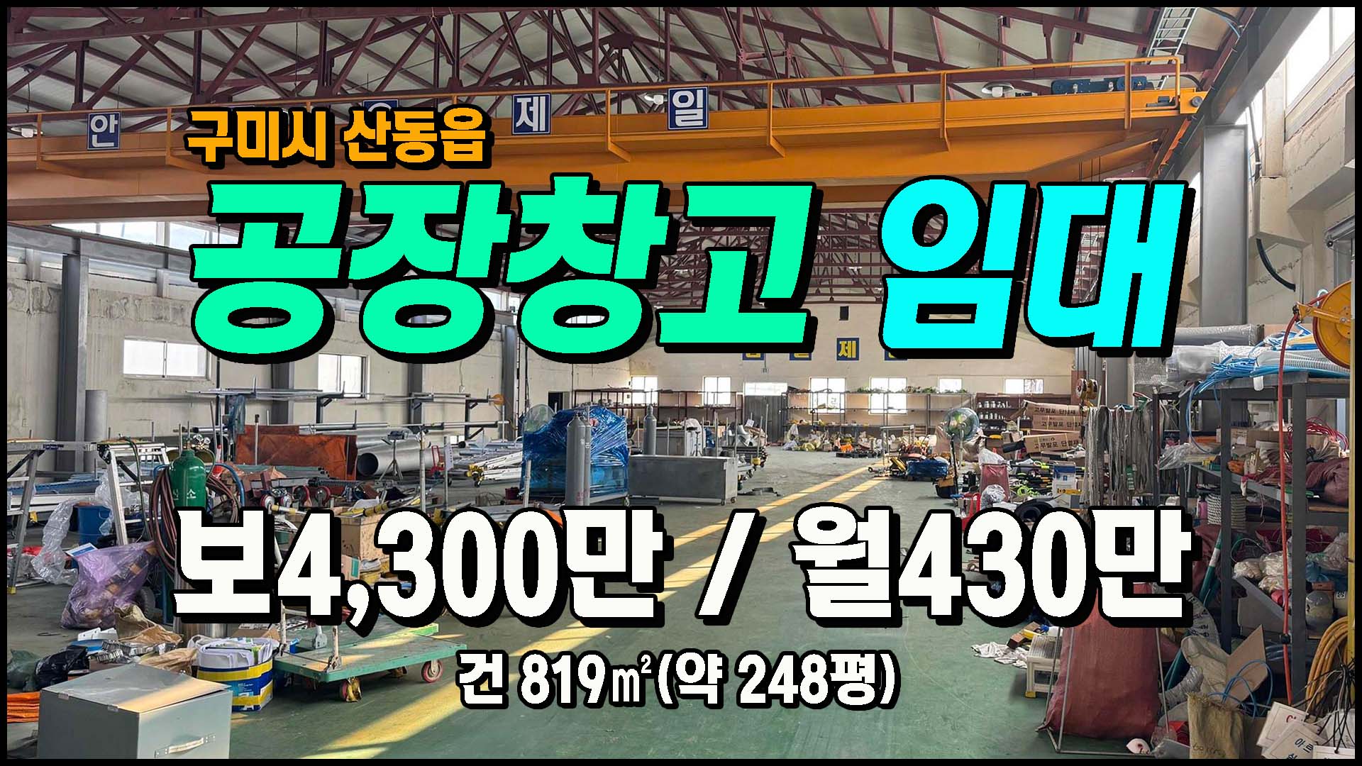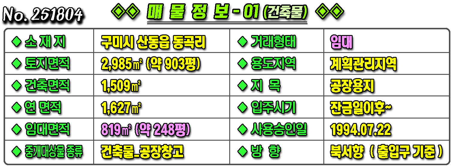 ▶ ◈ 공장창고-임대 [구미공장] ◈ 동곡리 5공단인근 계획관리 다용도 공장임대 ◈ 보4,300만 월430만 ◈