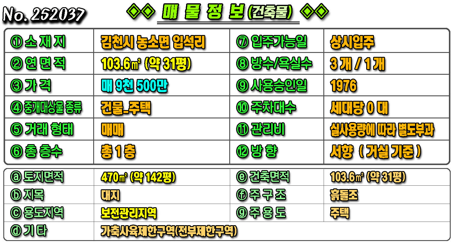 연면적 : 약 31평 용도지역 : 보전관리지역