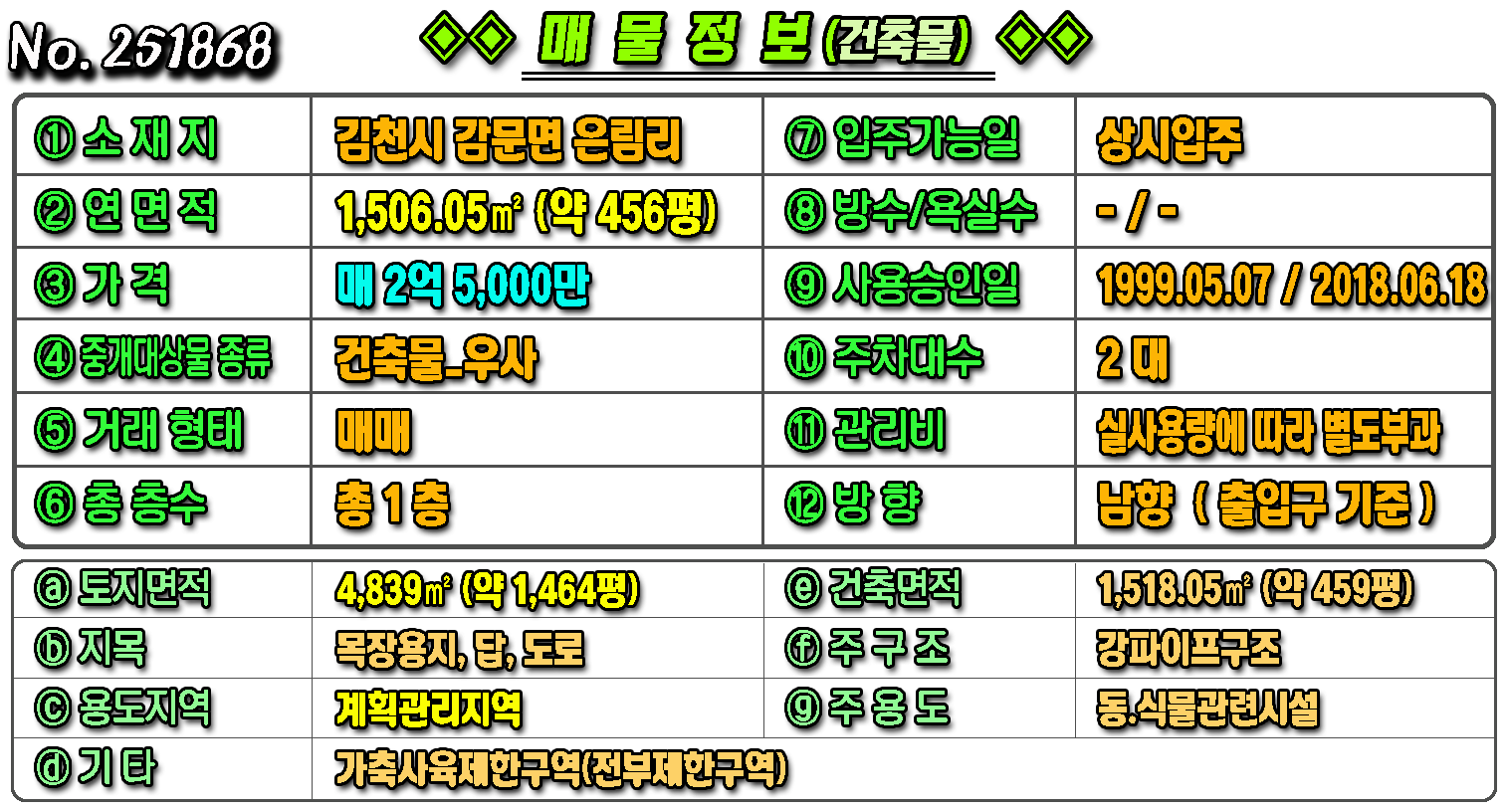 토지면적 : 약 1,464평 용도지역 : 계획관리지역