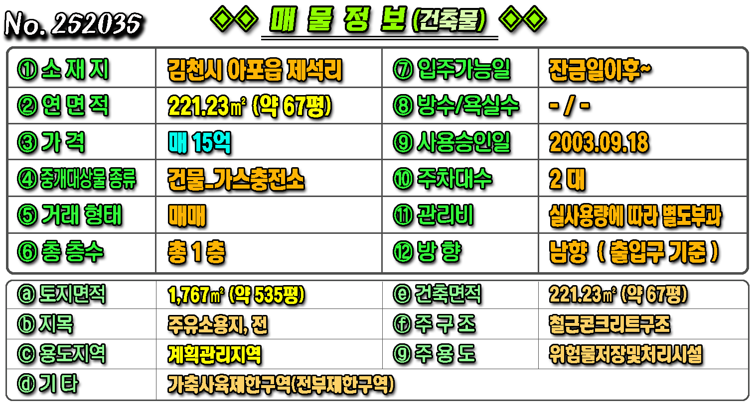 제목 [김천토지] ◈ LPG 가스충전소매매 대로변 입지우수한 투자매물 ◈ 토지 535평 건67평 ◈