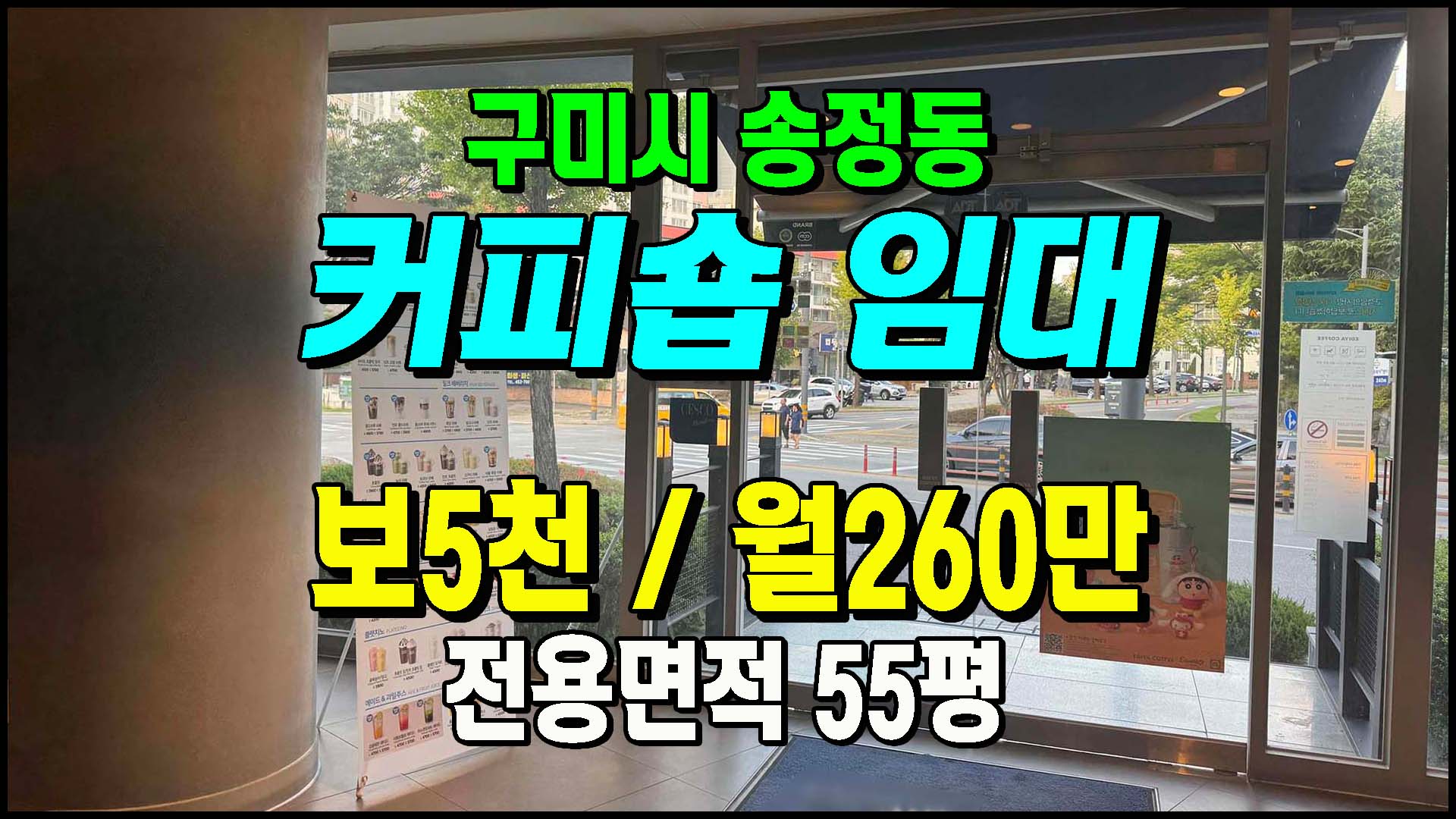 제목 [구미상가] ◈ 송정동 시청인근 대로변 커피숍임대 프랜차이즈 카페임대 ◈ 보5천 월260만 ◈