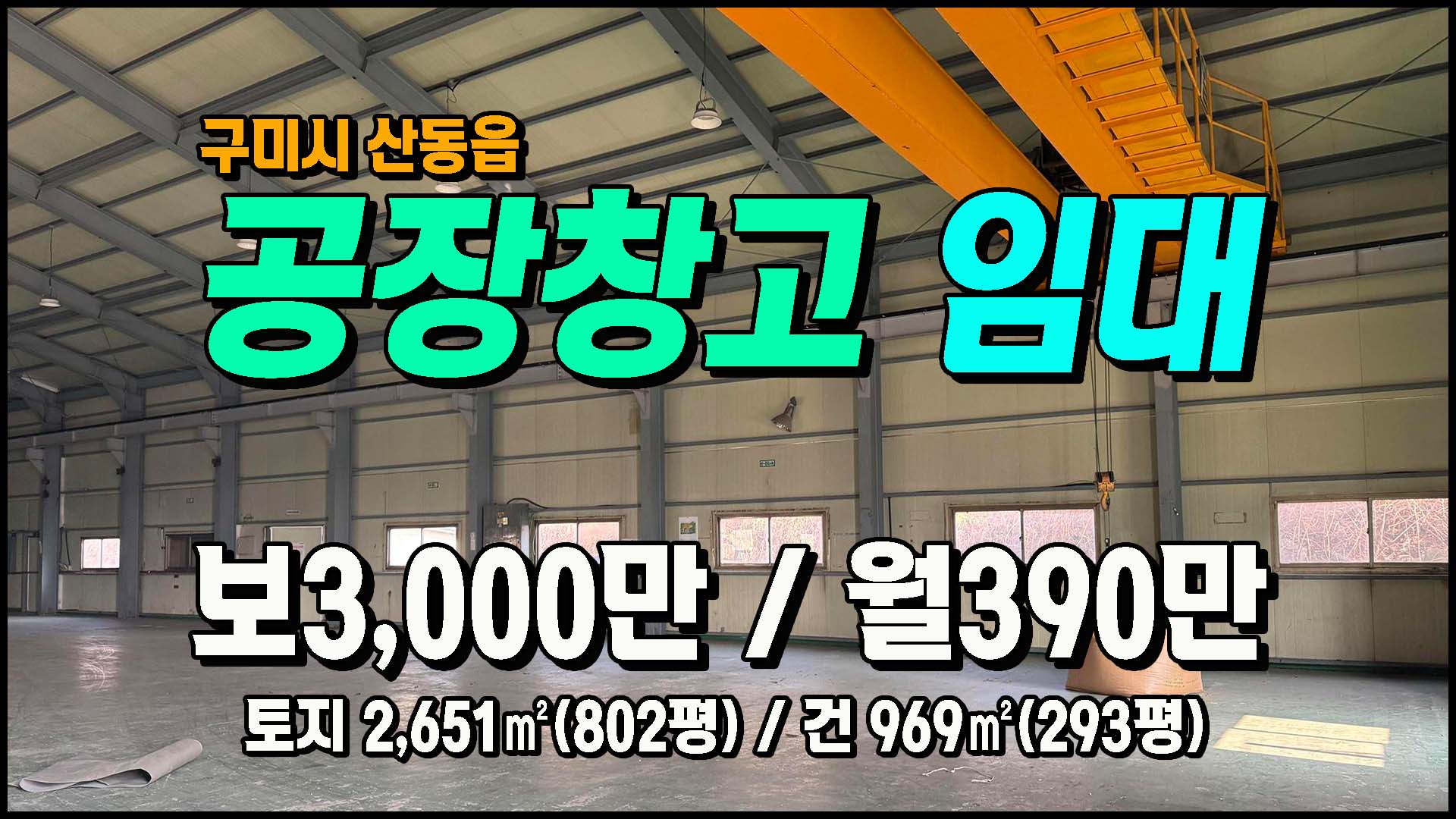제목 [구미공장] ◈ 인덕리 단독공장/큰차진입 크레인(2.8톤) ◈ 보3,000만 월390만 ◈