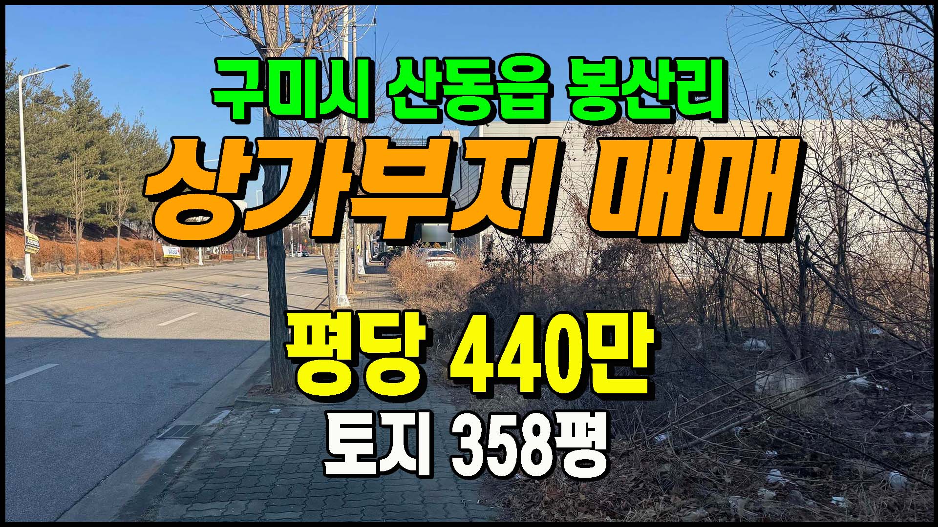 ▶ 토지/임야 [구미토지] ◈ 봉산리 4차선접 준공업지역 상가부지 나대지매매 ◈ 토지 358평 당440만 ◈