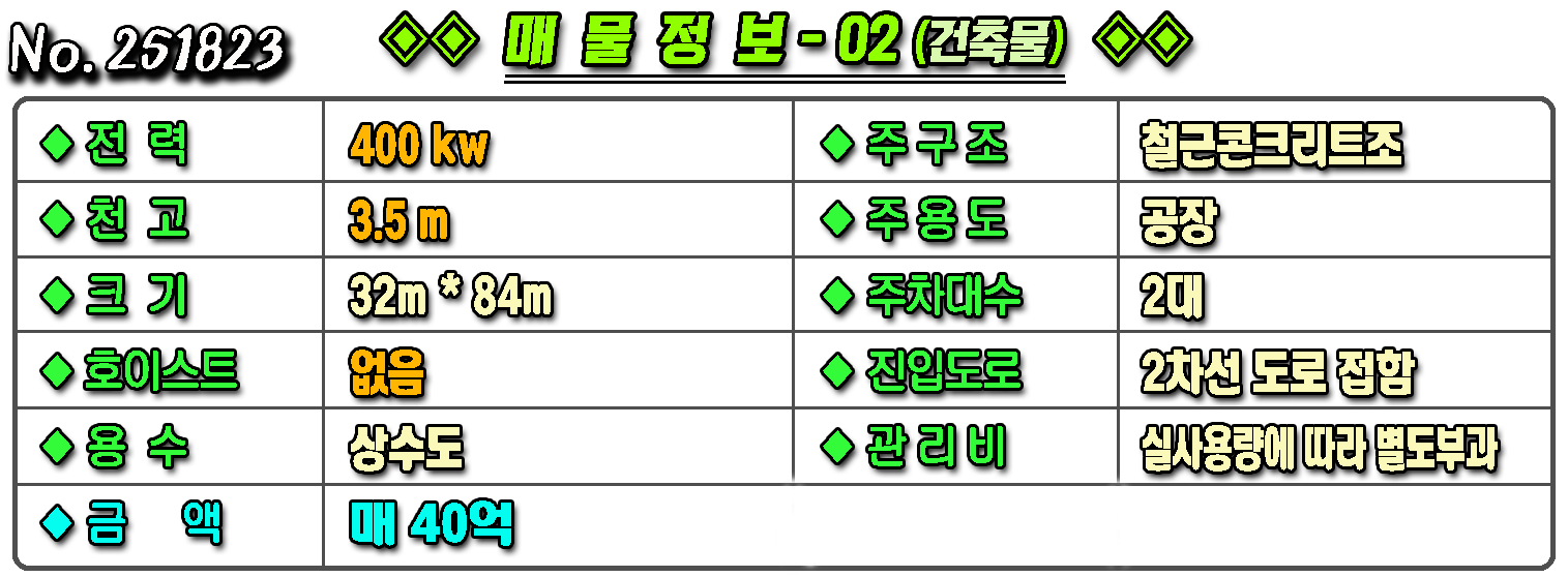 건축면적 : 약 1,784평 용도지역 : 일반공업지역
