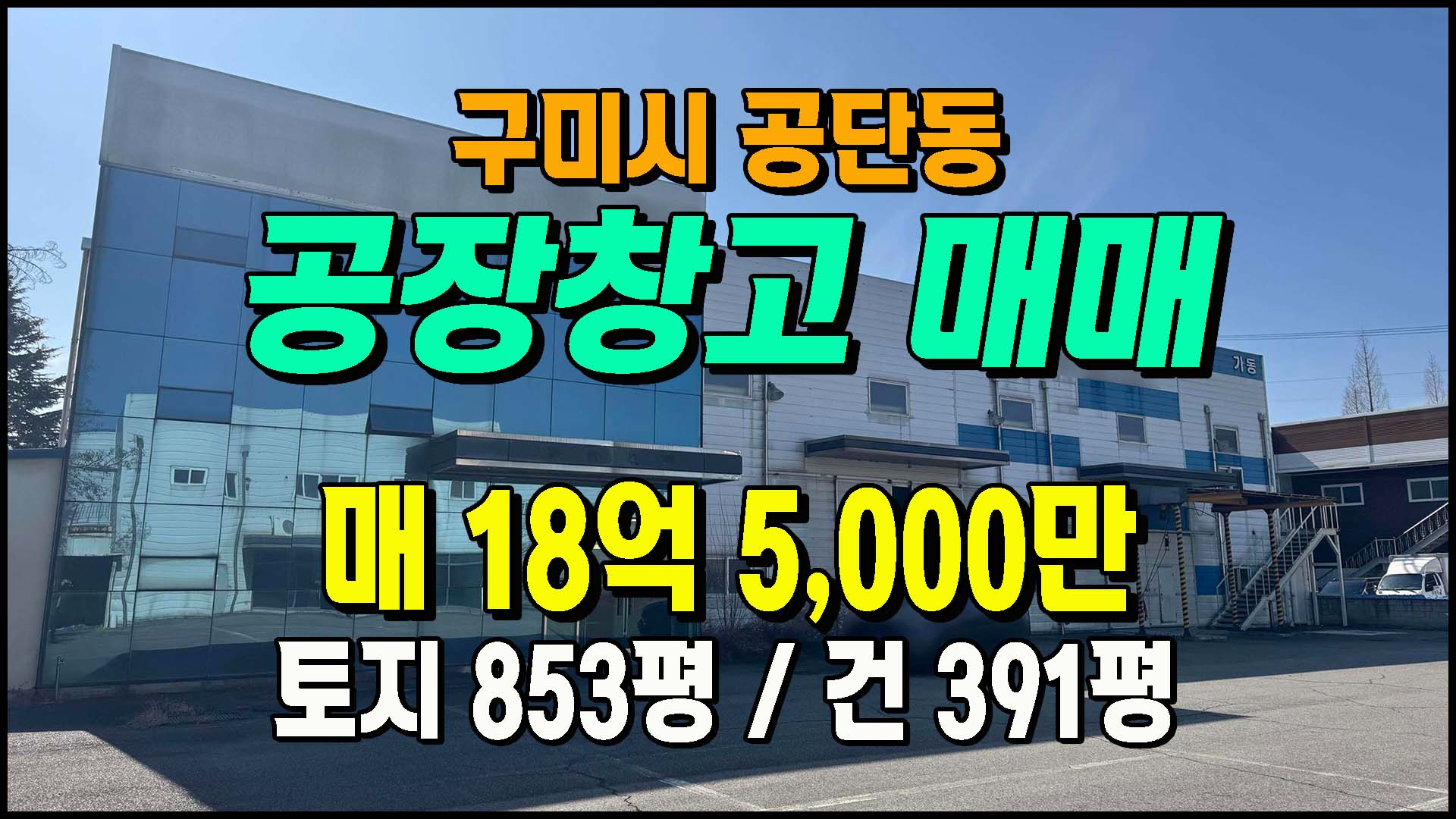 제목 [구미공장] ◈ 1공단 너른마당 크레인5톤 1공단 다용도 단독공장 ◈ 토지 853평 건391평 ◈