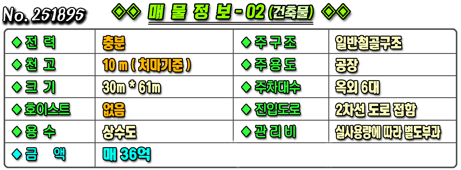 ▶ ◈ 공장창고-매매 [왜관공장] ◈ 낙산리 일반공업지역 2차선접한 신축급 다용도공장매매 ◈ 토지 1,256평 건584평 ◈