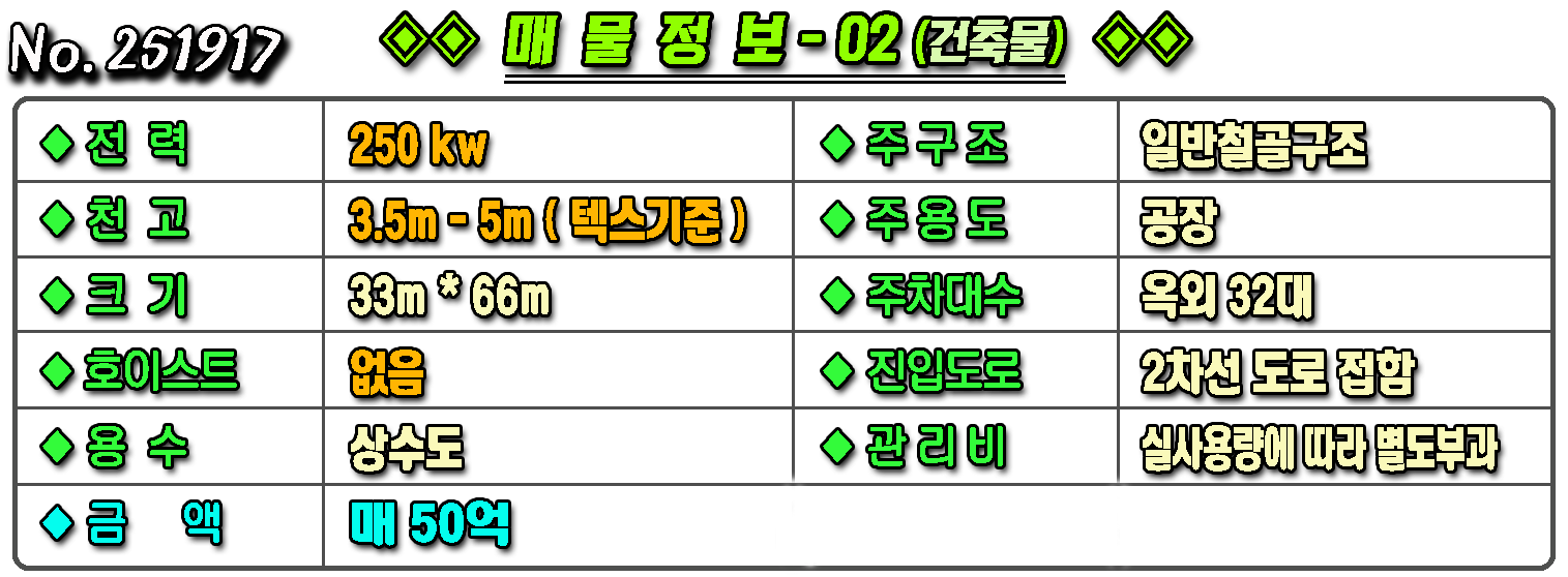 매물번호 251917 매물구분 ◈ 공장창고-매매