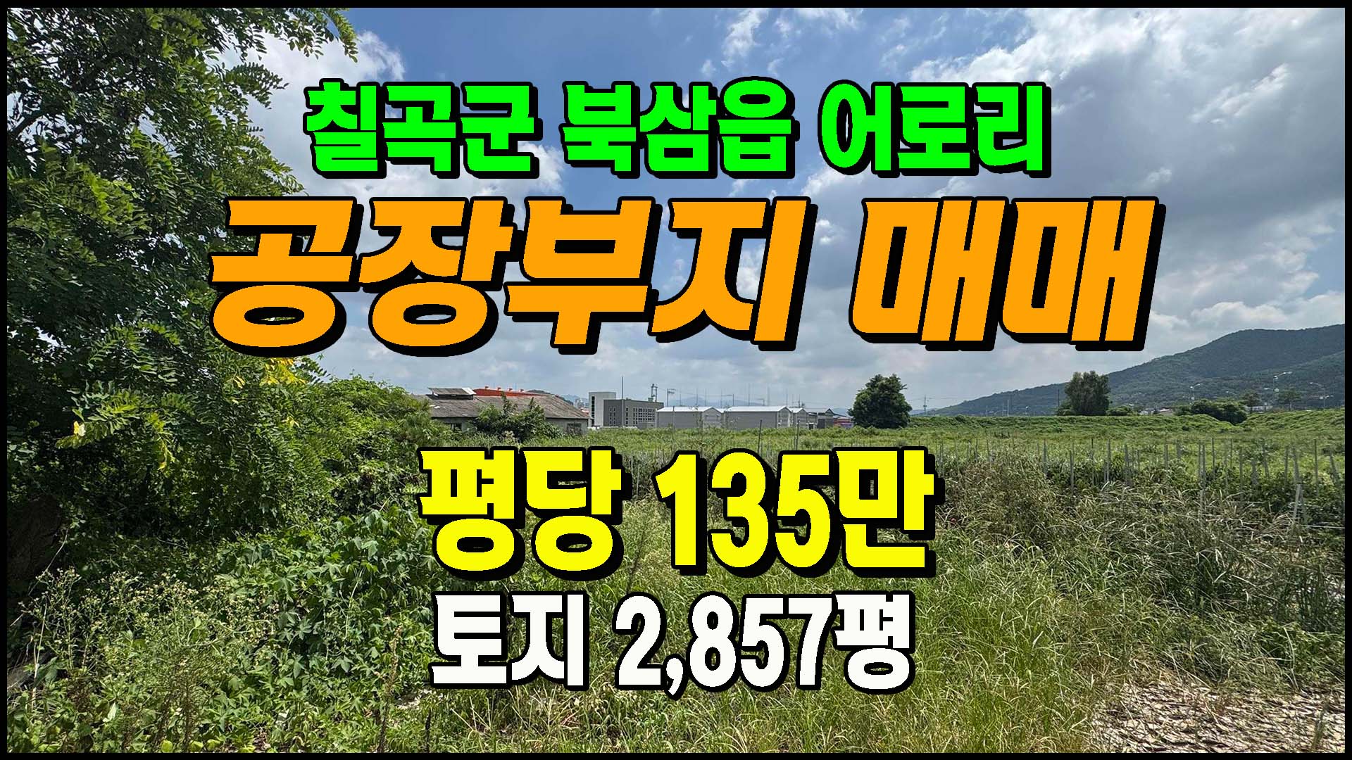 ▶ 토지/임야 [칠곡토지] ◈ 북삼읍 어로리 대로변 일반공업지역 다용도 공장부지매매 ◈ 토지 2,857평 당135만 ◈