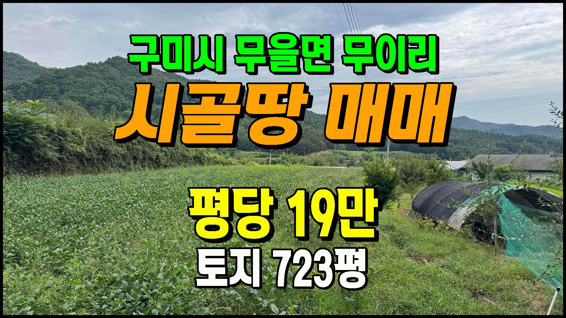 ▶ 토지/임야 [구미토지] ◈ 무을면 무이리 조용한 농촌 주말농장 전원생활 최적지 ◈ 토지 723평 당19만 ◈