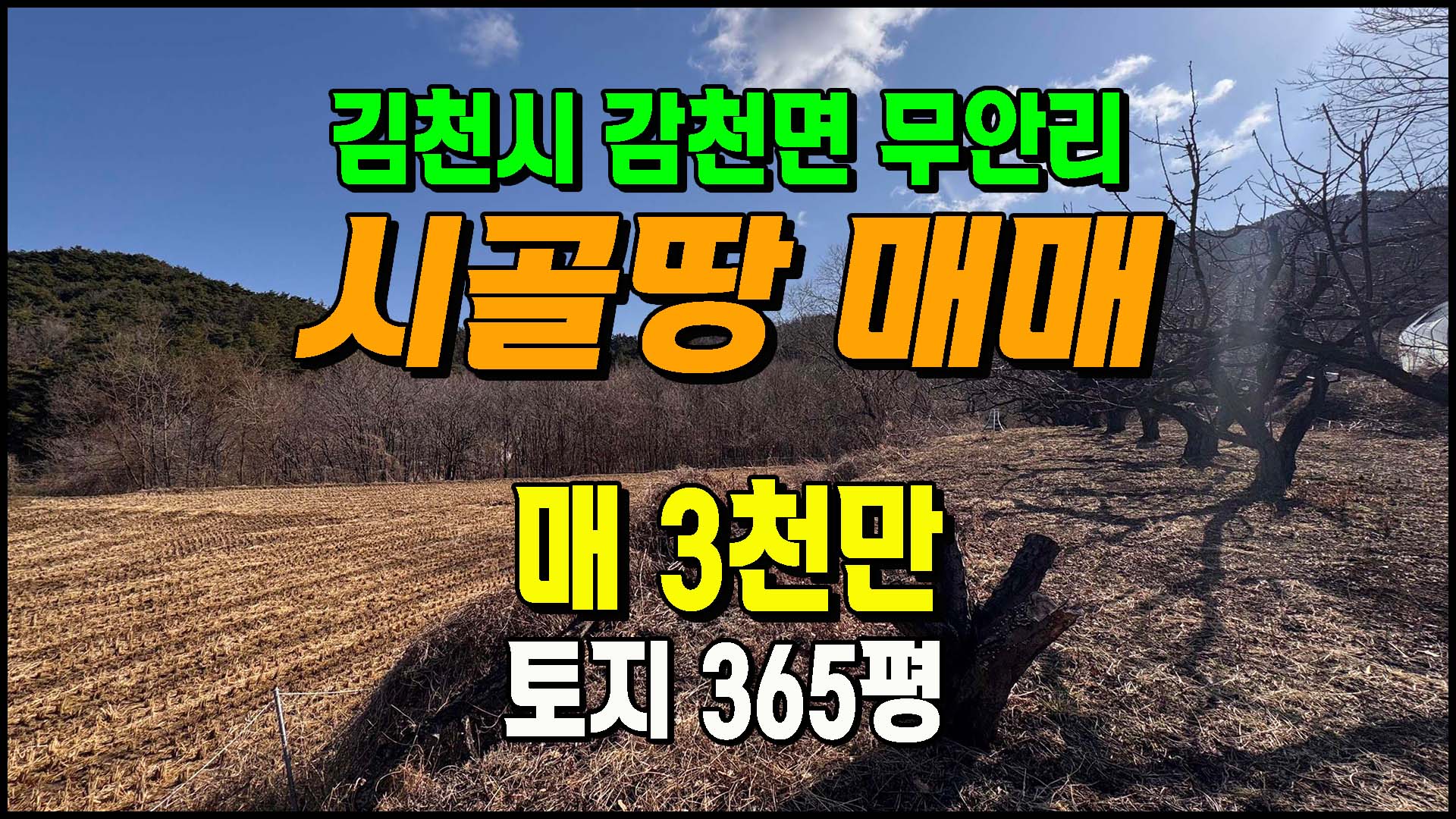 ▶ 토지/임야 [김천토지] ◈ 감천면 무안리 토지 과수원 주말농장 싼땅매매 ◈ 토지 365평 당8.2만 ◈