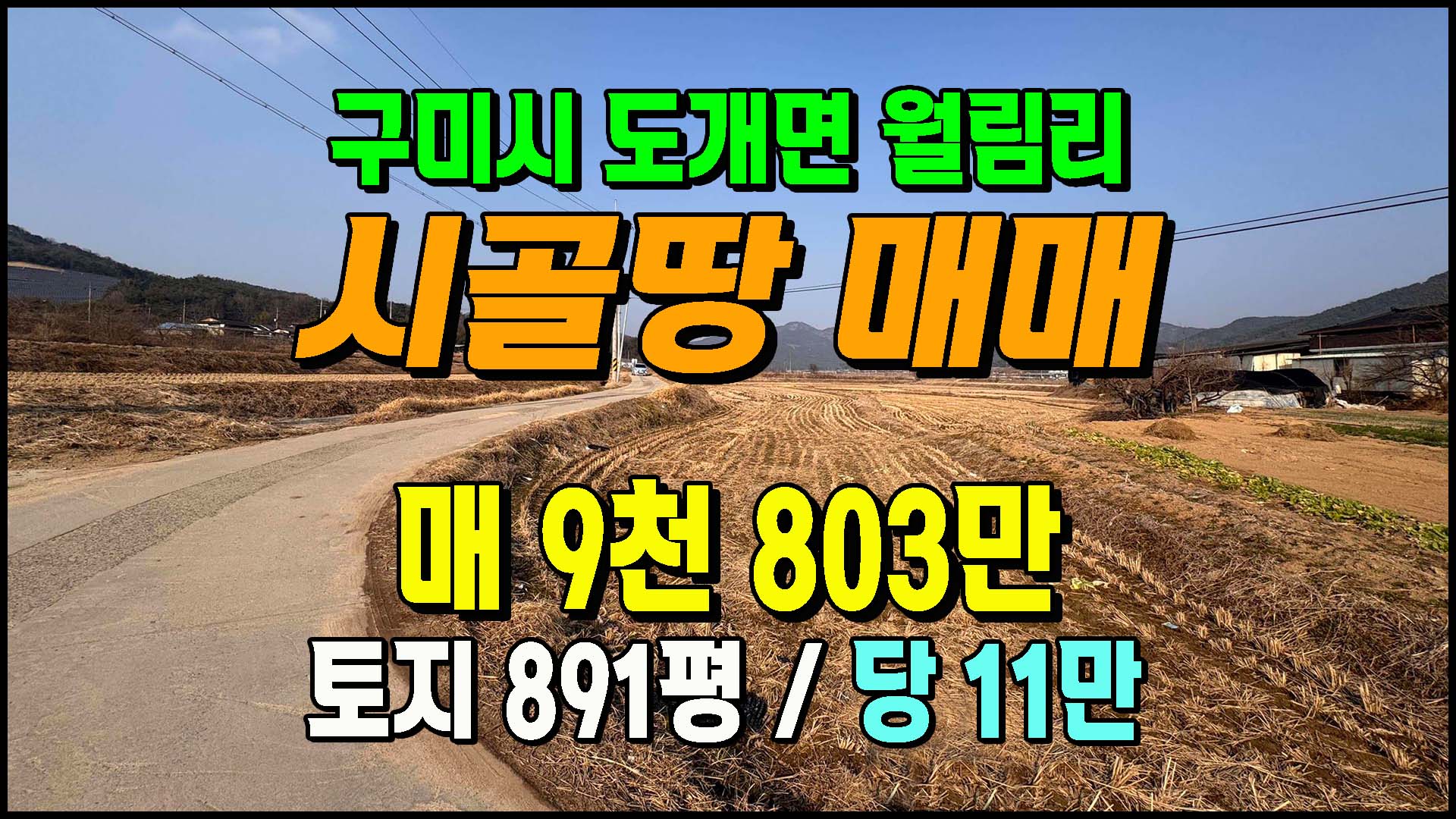 ▶ 토지/임야 [구미토지] ◈ 가성비 농지매매 벼농사 귀농귀촌용 토지 ◈ 토지 891평 당11만 ◈